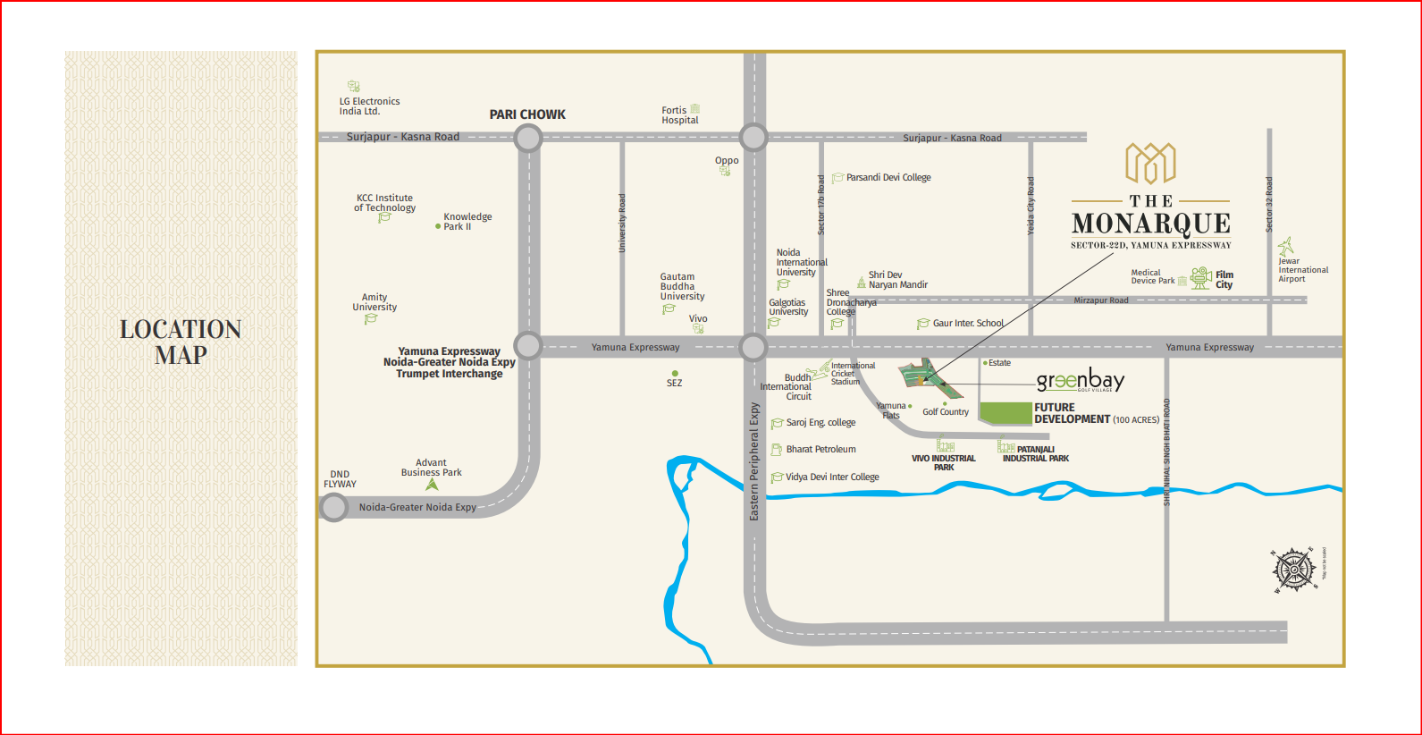 Greenbay Golf Village is the very first gated, low density residential township delivered on Yamuna Expressway, braced with a 12-hole executive golf course within the development. Now that’s what we call a nice tee-off! Spread over 100 acres, it imbibes an unmatched satisfaction of residing in a self-sustained environment, endowed with an ambience that exudes elegance, aesthetics and an eye for detail.